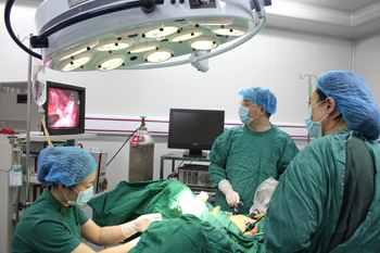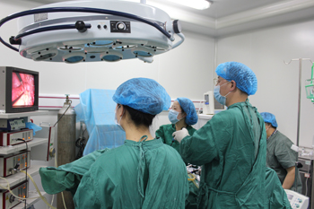李光仪教授在新阳光进行腔镜手术        李斌教授在新阳光进行腔镜手术