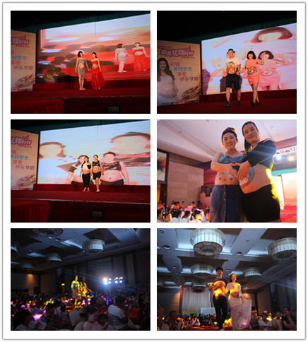 最美炫“腹”时刻·阳光魅力孕妈咪肚皮彩绘SHOW活动的最大亮点,就是孕妈咪彩绘走秀。伴随着音乐,“孕妇模特”们陆续走上T台,脸上笑容洋溢,走姿虽不是标准的猫步,但也有模有样,转身、 POSE一个不落,动作自然、洒脱。准妈妈们不仅没有一丝害羞,反而多了几分骄傲和自豪,赢得台下阵阵掌声。女人味十足的裙装,裤装的风格传递了青春动感、活力四射的精神状态;穿上婚纱的孕妈妈则陡然变身为大自然中清新的精灵,仙气飘飘,“孕”味十足。台下不仅准爸爸来助威,甚至双方爸爸妈妈和亲友们也都来到了现场,感受着现场的轻松愉悦氛围。