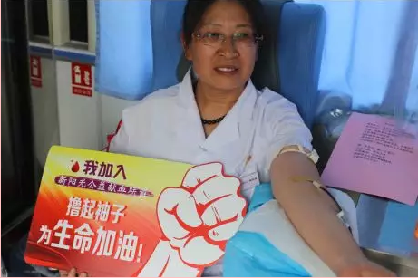 57岁的新阳光妇产医院业务院长解美清,不顾身体疲劳,坚持来到了采血现场,当200毫升健康血液被抽出的时候,解院长很兴奋并很惆怅地说:“我年轻时经常献血,今年我57了,过了60岁就不能献血了,可能这是我最后一次献血了。”