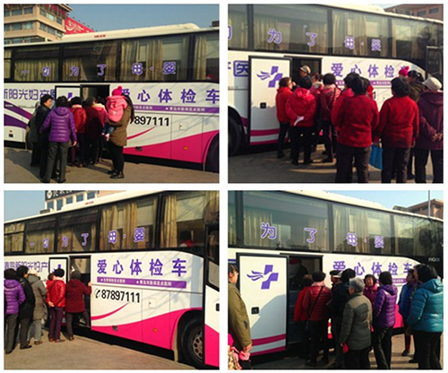 此次活动吸引了大批居民来做健康检查,新阳光的爱心体验车前排起长长的队伍,前后为58位不同年龄段的女性朋友做免费检查,主要有妇科B超、阴道镜和妇科免费咨询三个项目。